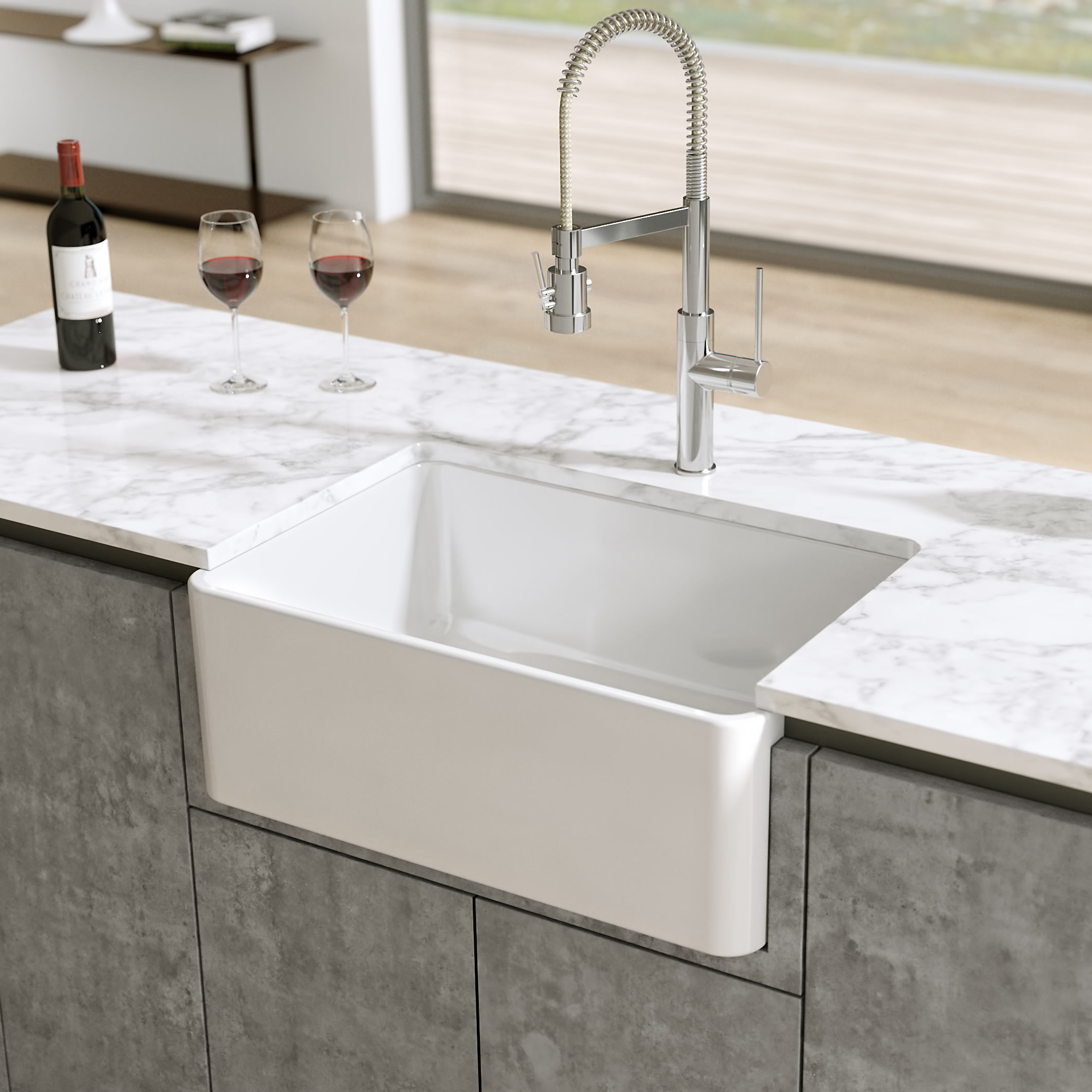 Engineered to perfection Bocchis 27-inch fireclay farmhouse sink from their Contempo line is a brilliant design choice for your classic or modern kitchen design. Designed in Italy and manufactured in Turkey Bocchis sinks pair form and function seamlessly with well-priced kitchen fixtures that arent afraid to make a statement. 3-12 Inch Key Features.